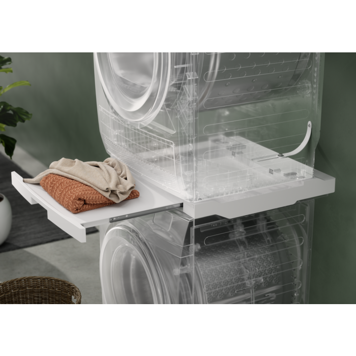 Me Takëmin tonë të vendosjes njëri mbi tjetrin, mund të instaloni lehtësisht tharësin tuaj mbi makinën larëse. Dhe një raft rrëshqitës i integruar e bën përdorimin pa mundim. I përshtatshëm për të gjitha makinat larëse dhe tharësit nga përpara të me një thellësi nga 52 deri në 67 cm.
