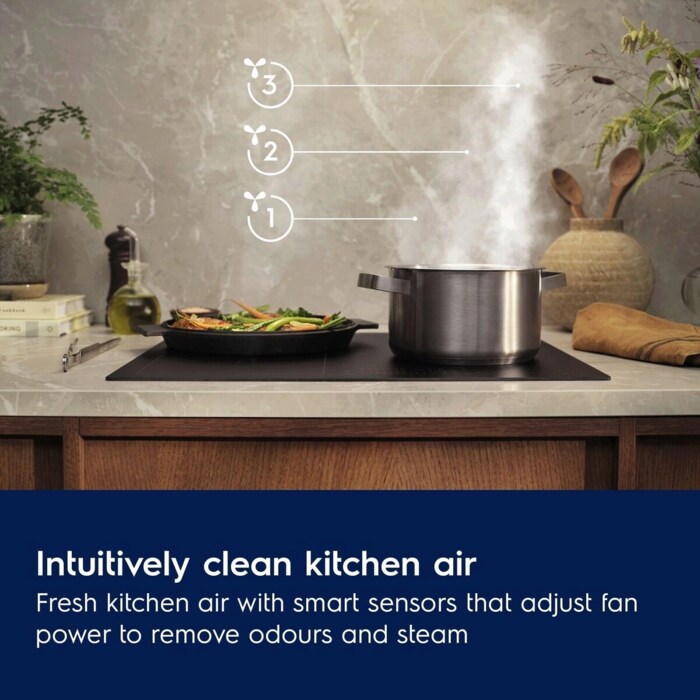Ventilatori 900 AutoSense ndien avullin, yndyrat dhe erërat në kuzhinë, dhe rregullon në mënyrë intuitive fuqinë e aspiratorit për të pastruar shpejt ajrin. Gatuaj për familjen dhe miqtë në një ambient të freskët kuzhine pa zhurmë.