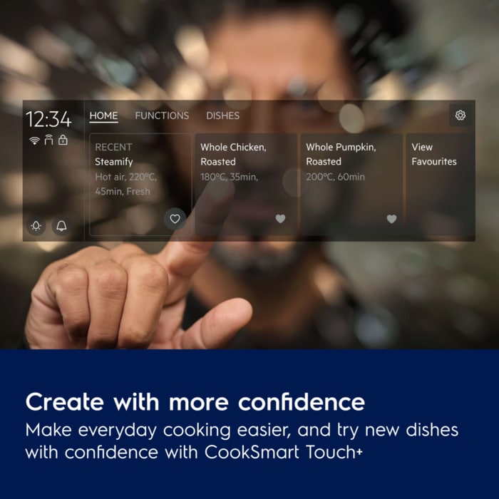 Shijo gatime më të shijshme duke përdorur më pak energji, si dhe ruaj dhe shiko pjatat dhe funksionet e preferuara me një prekje. Me furrën 900 ProAssist SteamPro dhe ekranin CookSmart Touch+ si udhërrëfyes, kjo është përditshmëria jote e re.