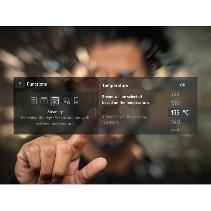 Funksionet e gatimitStew, Top, Top & Bottom, Pjatë e ngrohtë, Konservimi, ProSteam: Steam Full, ProSteam: Steam High, ProSteam: Steam Low, Refresh, Reheating, Roast, Slow Cooking, Avull, Steamify, Bottom, Pjekje e bukës, Shkrirje, Dehydrating, Ardhja e brumit, Skarë, Heat save fan, Avull i nxehtë, Hot air & Bottom, Hot air & Top, Mbani ngrohtë