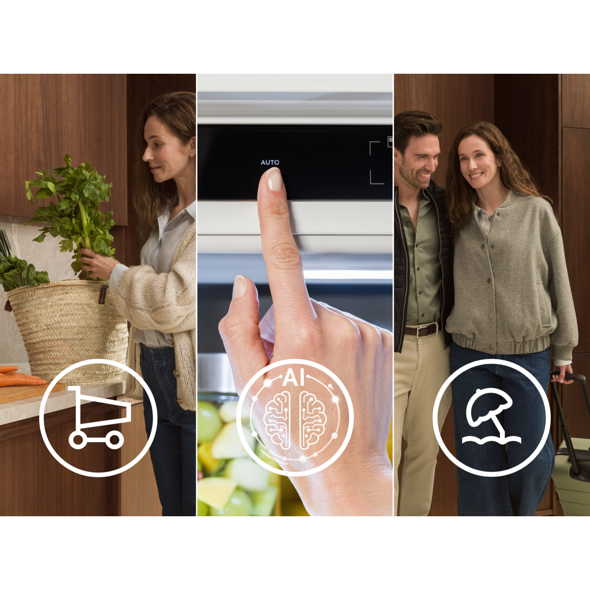 *Testuar në 1780 CB Multichill/Twintech Nofrost duke krahasuar konsumin e energjisë në 25°C me AI CoolAssist® të aktivizuar në "Auto Vacation Mode" kundrejt cilësimeve të fabrikës me AI CoolAssist® të çaktivizuar. Kursimi aktual mund të ndryshojë sipas temperaturave të ambientit dhe përdorimit.