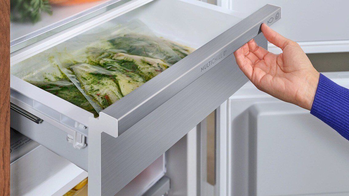 Përjeto ftohje cilësore me MultiChill 0°C. Pjesa e pasme prej xhami shton elegancë dhe shkëlqim, ndërsa qarkullimi i avancuar i ajrit ruan cilësinë e ushqimit. I prodhuar me plastikë të ricikluar, është i qëndrueshëm pa kompromis. Shijo sirtarin fleksibël MultiChill 0°C dhe veçoritë e lidhura me aplikacionin për përgatitje të lehtë të vakteve.