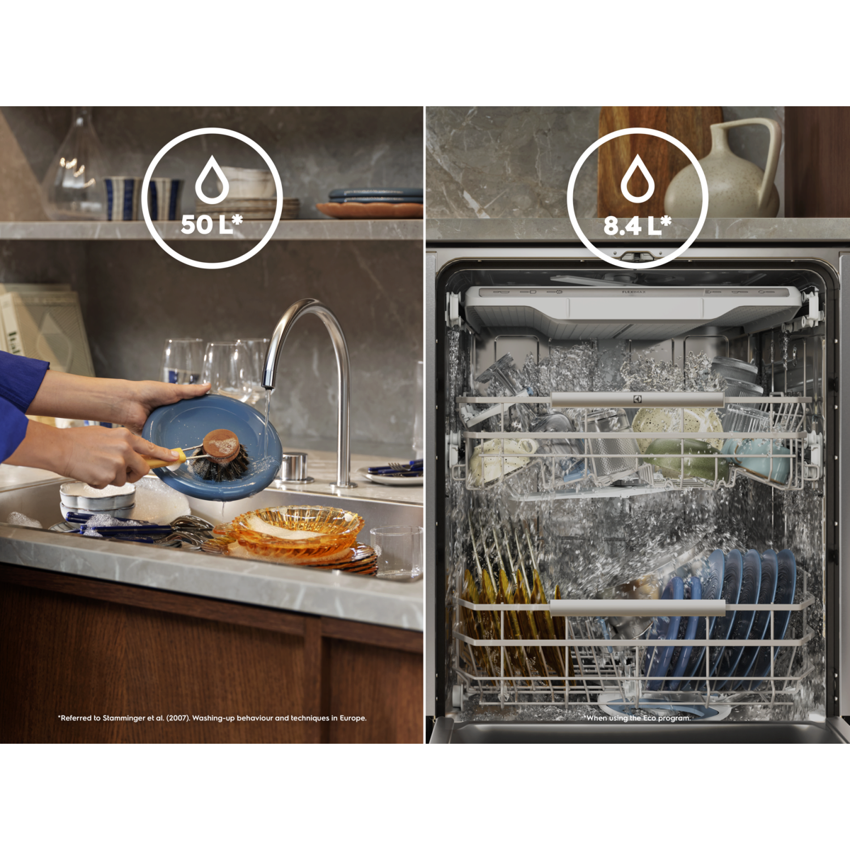 *Bazuar në një test të pavarur nga një institut gjerman i palës së tretë, duke përdorur detergjent në tableta dhe ciklin 90 minuta në një tavë me mbetje lazanje.