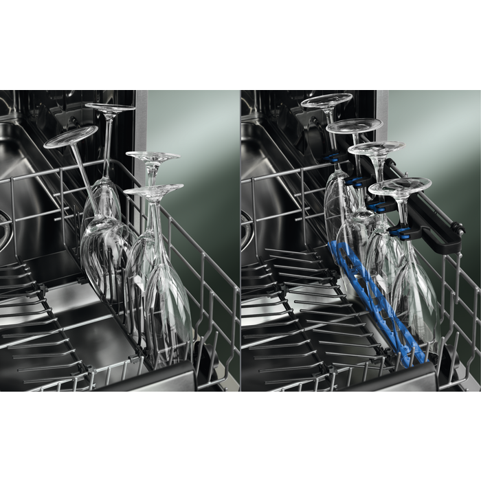 Gotat tuaja mbahen të sigurta dhe duke shkëlqyer me Pjatalarësen 700 GlassCare. SoftGrips dhe SoftSpikes tona unike mbajnë butësisht gotat tuaja tamam në pozicionin e duhur në raftin e sipërm. Në rastin e poshtëm, GlassHolder kujdeset edhe për gotat e gjata me fron.