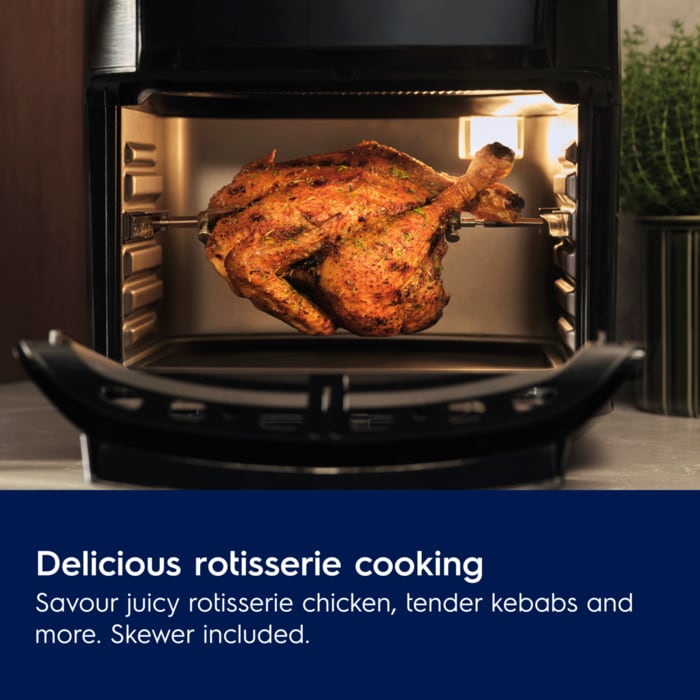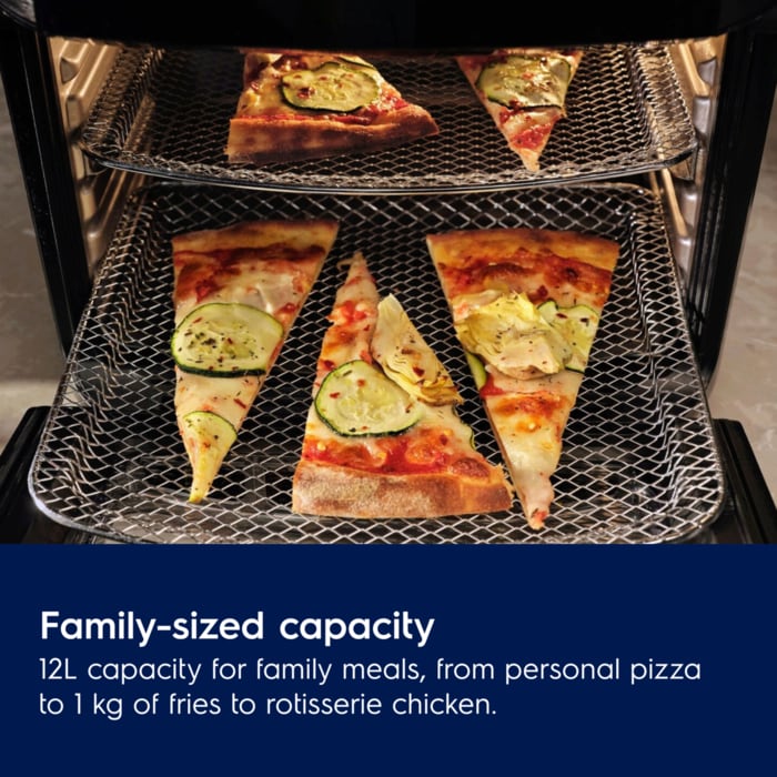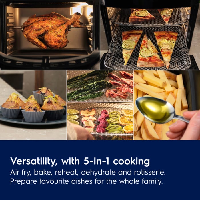 Përfitoni shkathtësi maksimale me 5 modalitete gatimi në 1 furrë tryeze duke përfshirë skuqje me ajër, pjekje, ringrohje, dehidrim dhe rosto. Kapacitet i madh, 12 litra për vaktet familjare. Një derë xhami që do të thotë se mund të kontrolloni ushqimin tuaj pa e hapur derën.