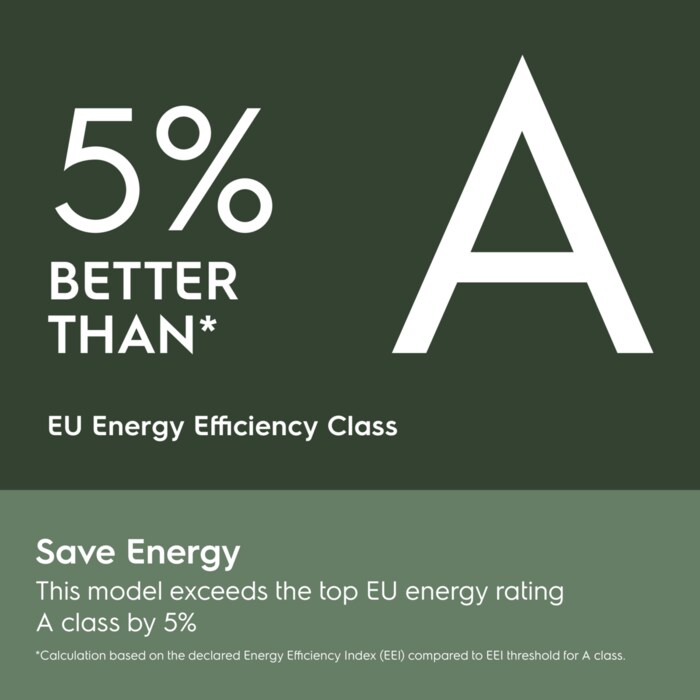 *Bazuar në analizë të brendshme të kohës, ujit dhe konsumit të energjisë së një ngarkese 1 kg krahasuar me ngarkesën maksimale në ciklin e tharjes së të pambuktave duke përdorur SensiCare+ që rregullon programin e tharjes bazuar në madhësinë e ngarkesës.