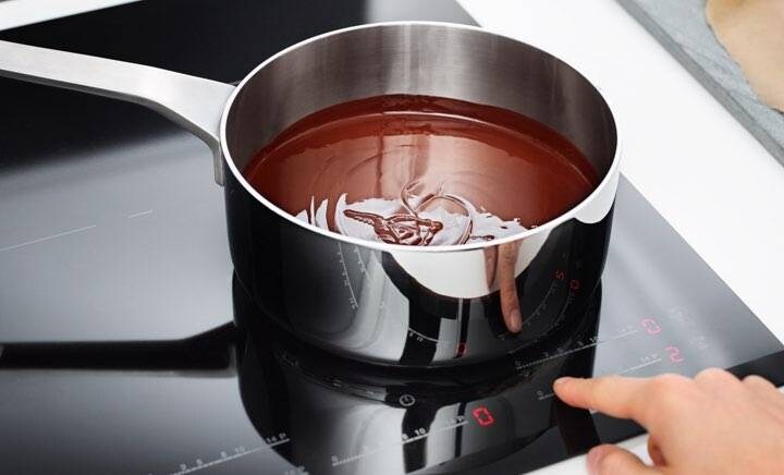 1Shkrini çokollatënPërdorni një pianurë me induksion për të shkrirë me delikatesë 1/2 kupe çokollatë të zezë derisa të jetë e butë dhe uniforme.