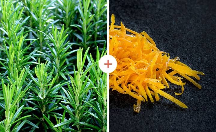 Lëkura e portokallit dhe rozmarinaRozmarinës aromatike i pëlqen lëkura e portokallit, një mënyrë e ndryshme dhe e shijshme për të përgatitur erëzat për salmonin.