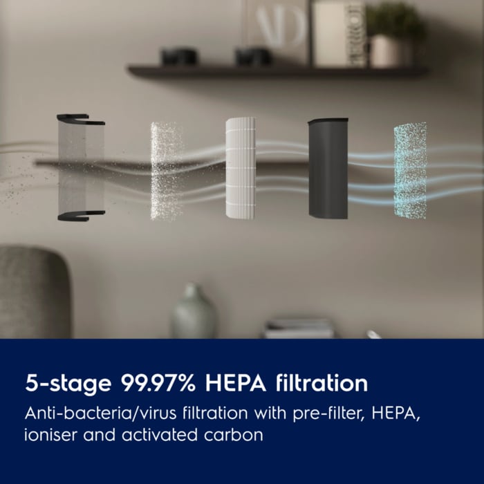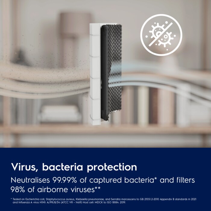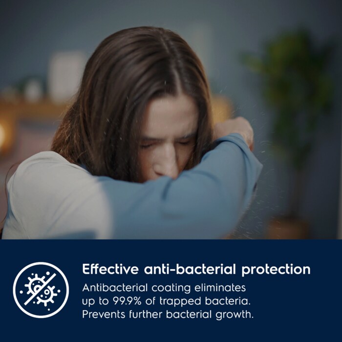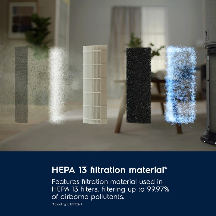 Redukto në mënyrë metodike ndotësit PM2.5 dhe ultrafinë të ajrit. Përmban material filtrues ultrafin të përdorur në filtrat HEPA 13*, i aftë për të filtruar deri në 99,97% të ndotësve të ajrit.