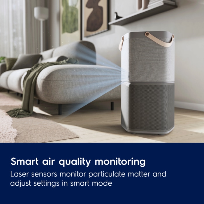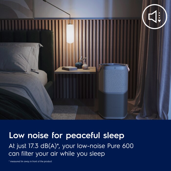 I përsosur për hapësira të mëdha: Me një prej 520**, Pure 600 pastron ajrin në një dhomë 110 m2*** në më pak se 4,24 minuta*, në sajë të rrjedhës së ajrit të fuqishme spirale AirSurround. Një filtër i karbonit të aktivizuar neutralizon formalinën dhe VOC të tjera.