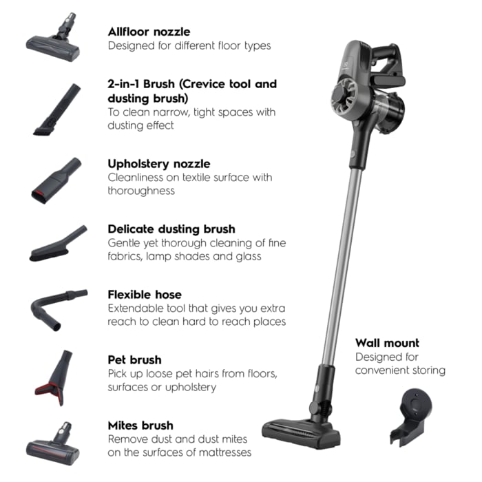 Electrolux 300 Cordless cleaner pa çantë Grey 63mins