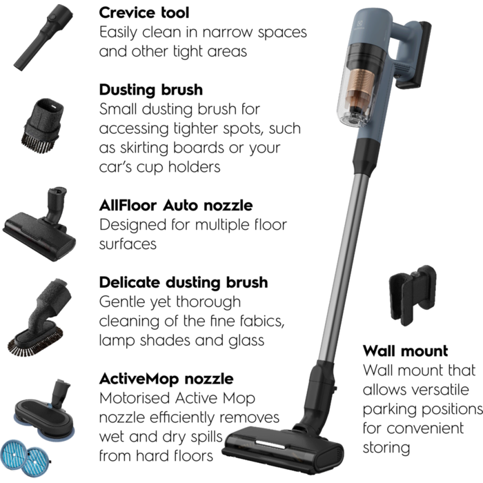 Pastruesi pa kabllo 700 kombinon performancën e fuqishme me përdorimin e lehtë, me funksionin e dyfishtë të fshesës me korrent dhe shtupës. Gryka shtesë ActiveMop e bën të lehtë pastrimin e pikave dhe njollave.