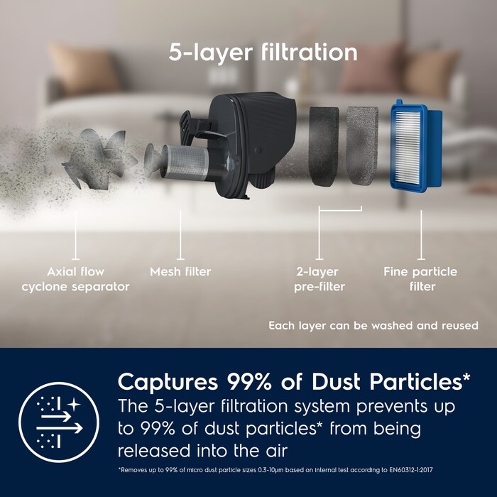 *Ruan 99% tё performancёs fillestare tё pastrimit ndёrsa mbushet koshi i pluhrit sipas IEC 62885-2 edicioni 1.0: 5,1, 5,7 & 5,9 nё cilёsimin maksimal tё energjisё